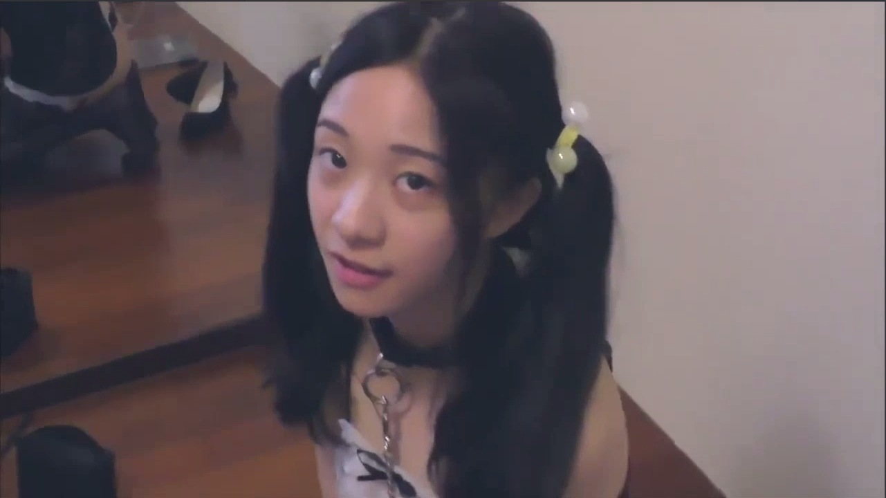 成功驯服一个双马尾小萝莉!戴着狗链项圈在脖子跪在地板上